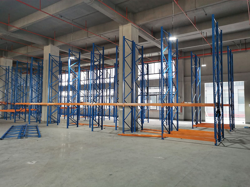 因為倉庫的空間實在不夠用,在安裝重型貨架的時候,一邊快速地安裝著貨架,一邊把貨物放到剛安裝好的貨架上。